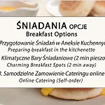 بالإضافة إلى مرافق الخدمة الذاتية مثل المطبخ، يوفّر مكان الإقامة أيضًا منطقة لتناول الطعام. سيستمتع الضيوف بالمأكولات الأوروبية التي يتم تقديمها في ORZO People Music Nature Poznań الذي يقع على بُعد نحو 5 دقائق مشياً على الأقدام. يقع مكان الإقامة بضع دقائق بالسيارة من أقرب محطة حافلات Mostowa.